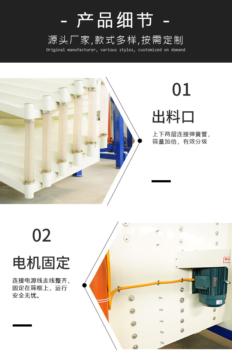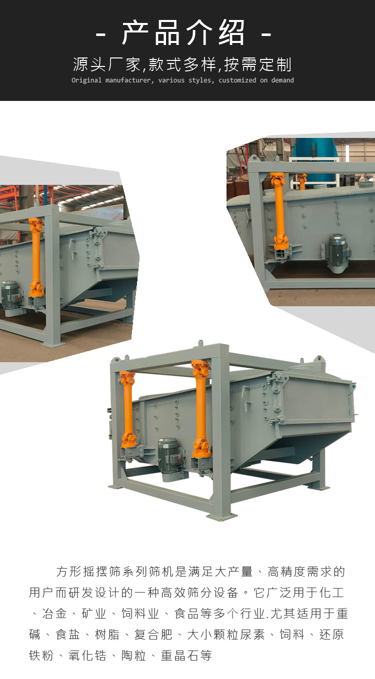 大產量方形搖擺篩是一種新型篩分設備,它糅合了多種篩分運動方式,可以更好的篩分物料,全封閉結構、環保又高效,多層篩框設計,大產量實力碾壓。