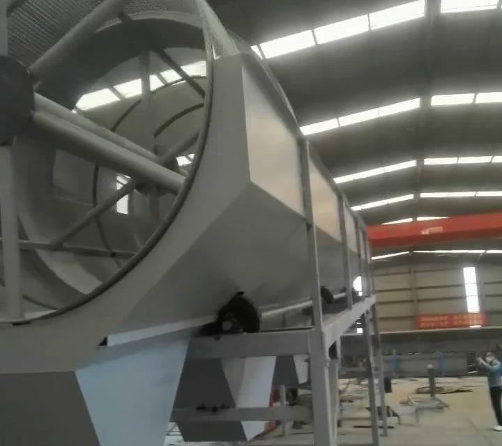 2、滾筒篩2000*11000mm 一臺 不銹鋼篩網(wǎng) 網(wǎng)孔分別為4*4mm 1500*4900mm 3片 1.5mm絲, 5*5mm 1500*4900mm 1片 1.5mm絲 , 10*10mm 1500*4900mm 2片 2.5mm絲, 25*25mm 1500*4900mm 1片 3mm絲, 帶收料倉厚3mm 帶支腿 物料最大塊40mm
