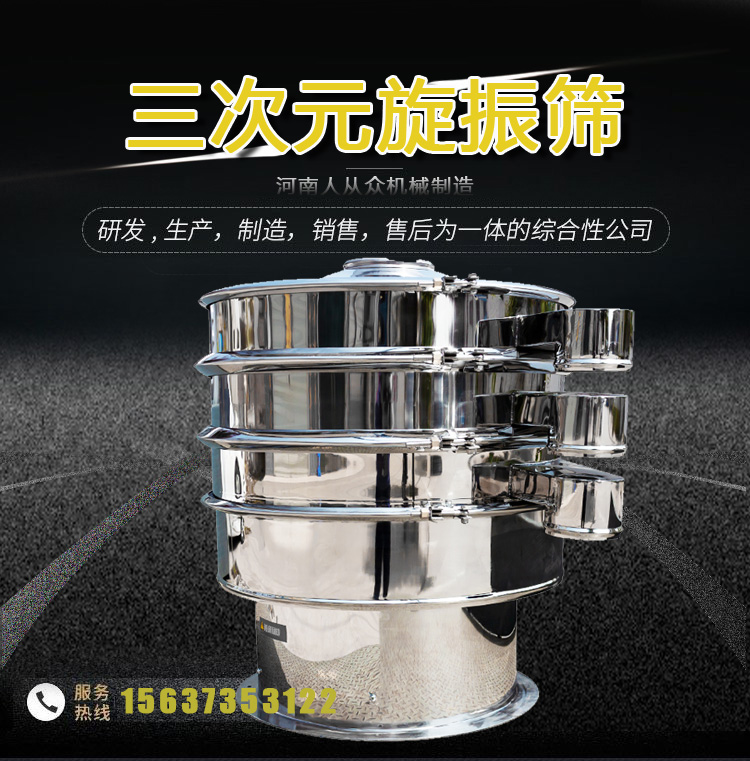 粉末顆粒振動篩的運動軌跡是一條復雜的三維曲線。水平面上的投影是圓,在兩個垂直面上的投影是兩個相同的橢圓。通過調(diào)整振動電機上下端偏心塊的相對相位,可以改變物料在篩面上的運動軌跡,從而達到不同的篩分目的;適用于面粉、淀粉等粉狀物料和各種顆粒狀物料的篩分。